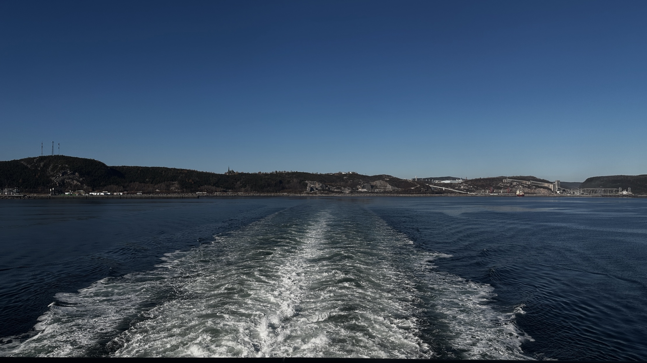 Irgendwie hatte ich das Gefühl, dass sie die immergleichen Wagen hin und her bewegten. Aber offenbar verluden sie diese in eine Eisenbahnfähre. Interessant, diese riesigen Aluminiumblöcke. In Baie-Comeau gibt es ein grosses Aluminium-Elektrolysewerk, das die Energie von grossen Wasserkraftwerken der Nachbarschaft bezieht.