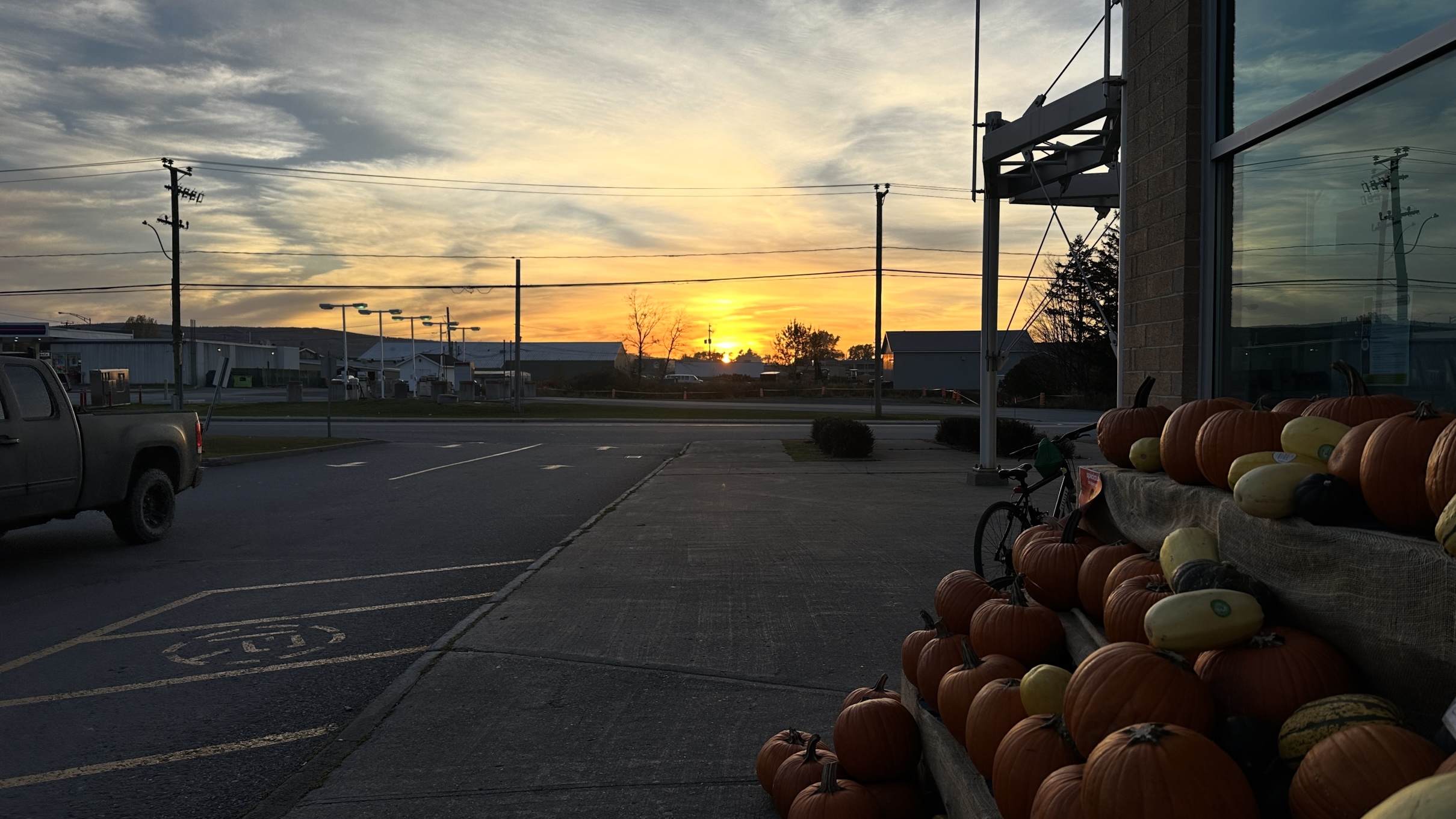 Ich ging die Strasse wieder hoch zum Supermarkt und kaufte ein wenig ein. Beim Verlassen kurz vor fünf Uhr begann die Sonne unterzugehen.