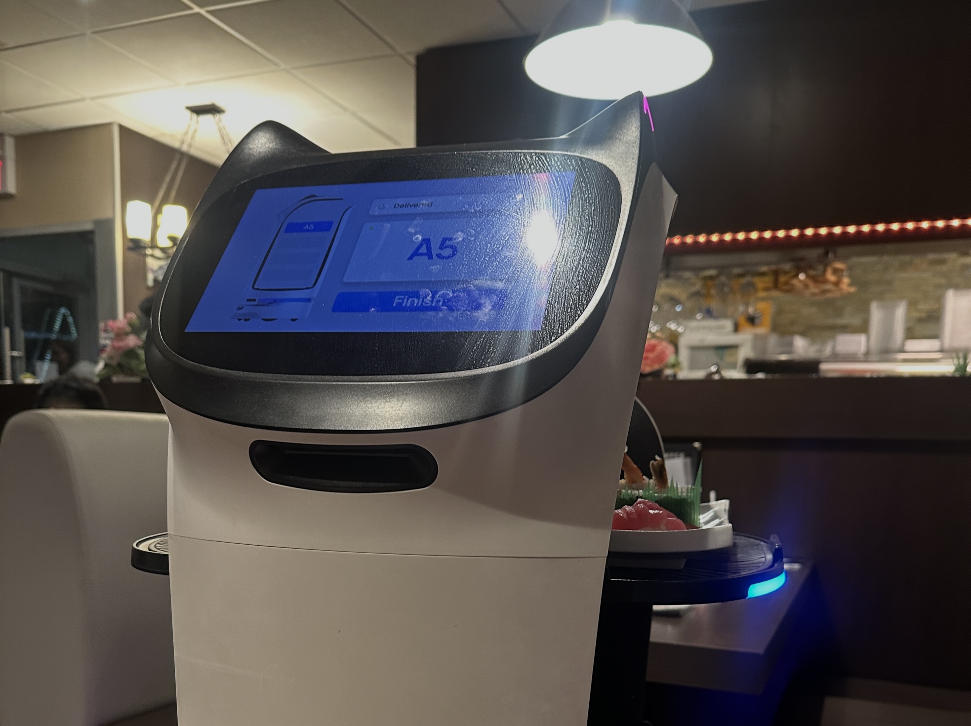 Danach kam Robi an meinen Tisch. Ich dachte erst, dass die Angestellten ihn ausladen, aber es ist wirklich so, dass man die Ware aus der Ablage nimmt und auf dem Bildschirm quittiert. Er kriegt dann so lächelnde Katzenaugen und quietscht etwas auf Japanisch (ev. Arrigato?) und verschwindet wieder.
