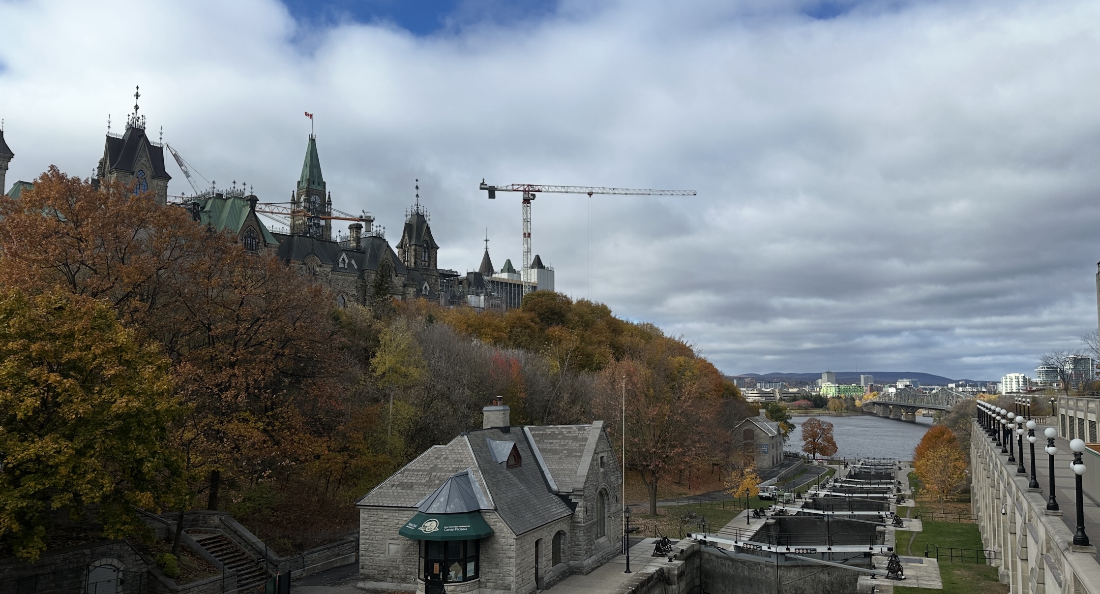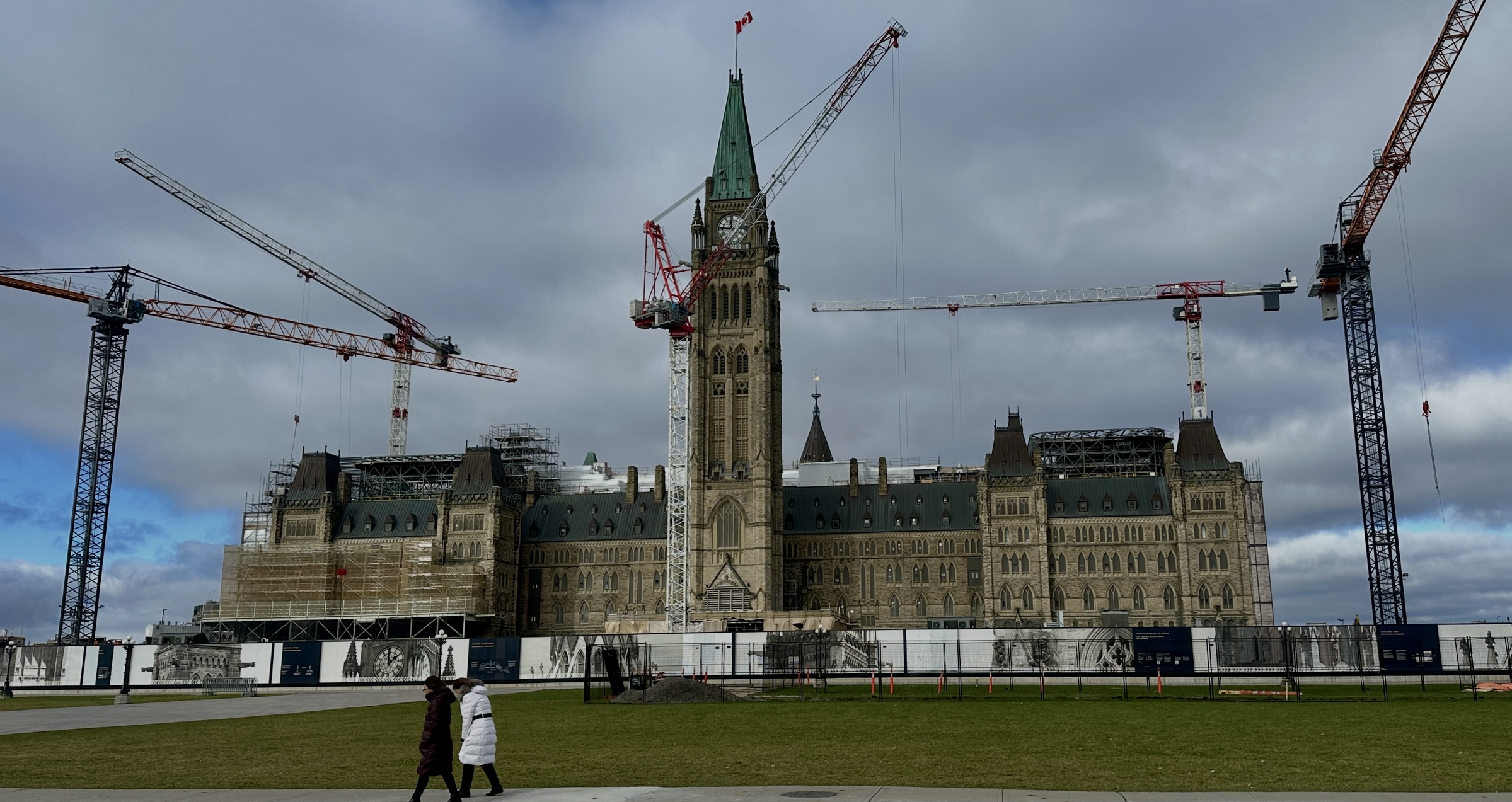 Am «Centre Block» mit dem 92 Meter hohen «Peace Tower» gibt es aber nichts mehr zu retuschieren. Die Baukräne erfreuen vielleicht ein paar der Leser.