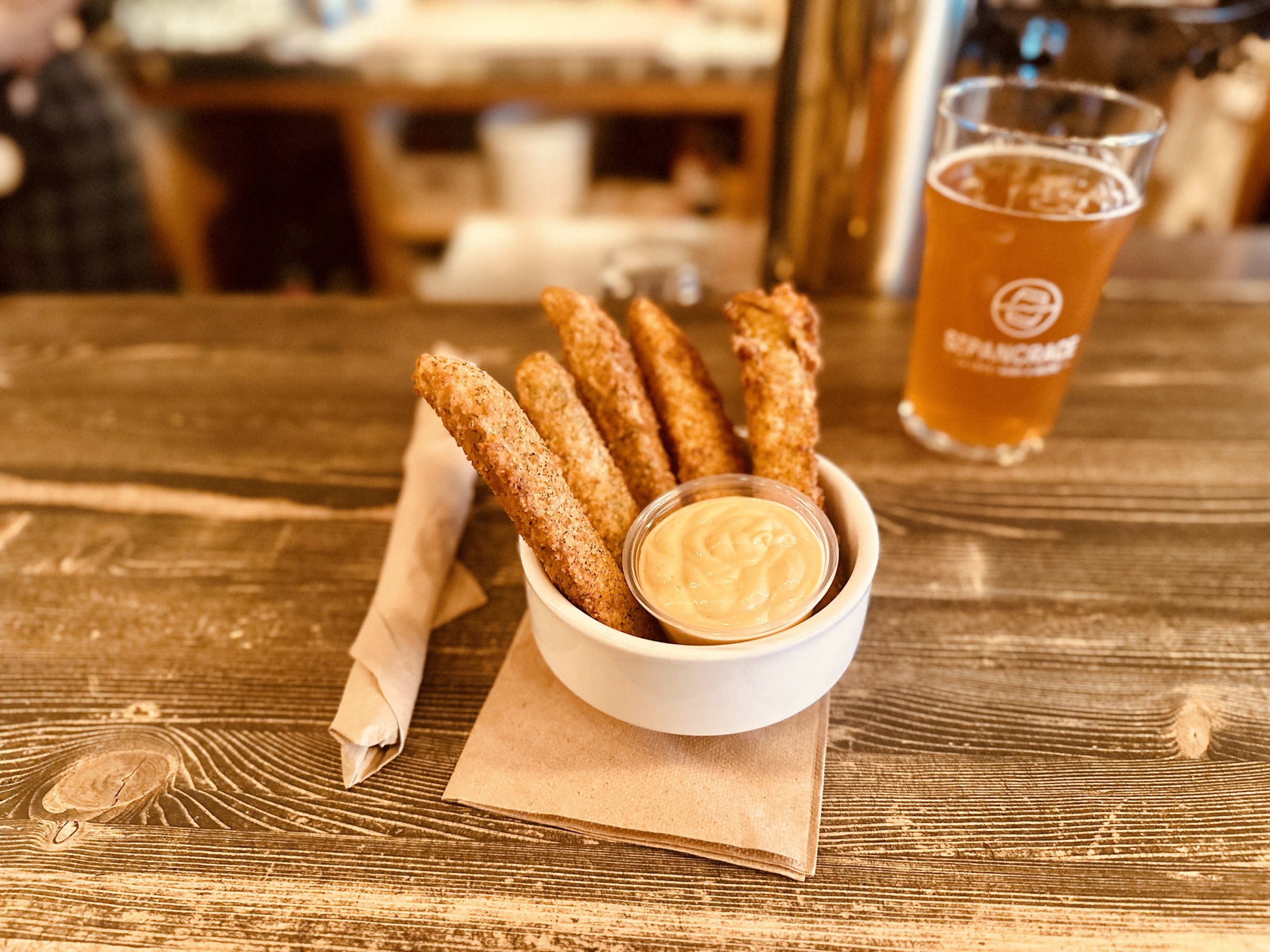 Danach ging ich schnurstracks über die Strasse (Google Maps wollte mich 30m die Strasse hoch und zurück zum Zebrastreifen senden) zur Microbrasserie Saint-Pancrace, welche nicht nur leckere Biere (IPA, dieses Mal) hatte, sondern auch exotische Snacks, wie zum Beispiel frittierte Essiggurken. 😳