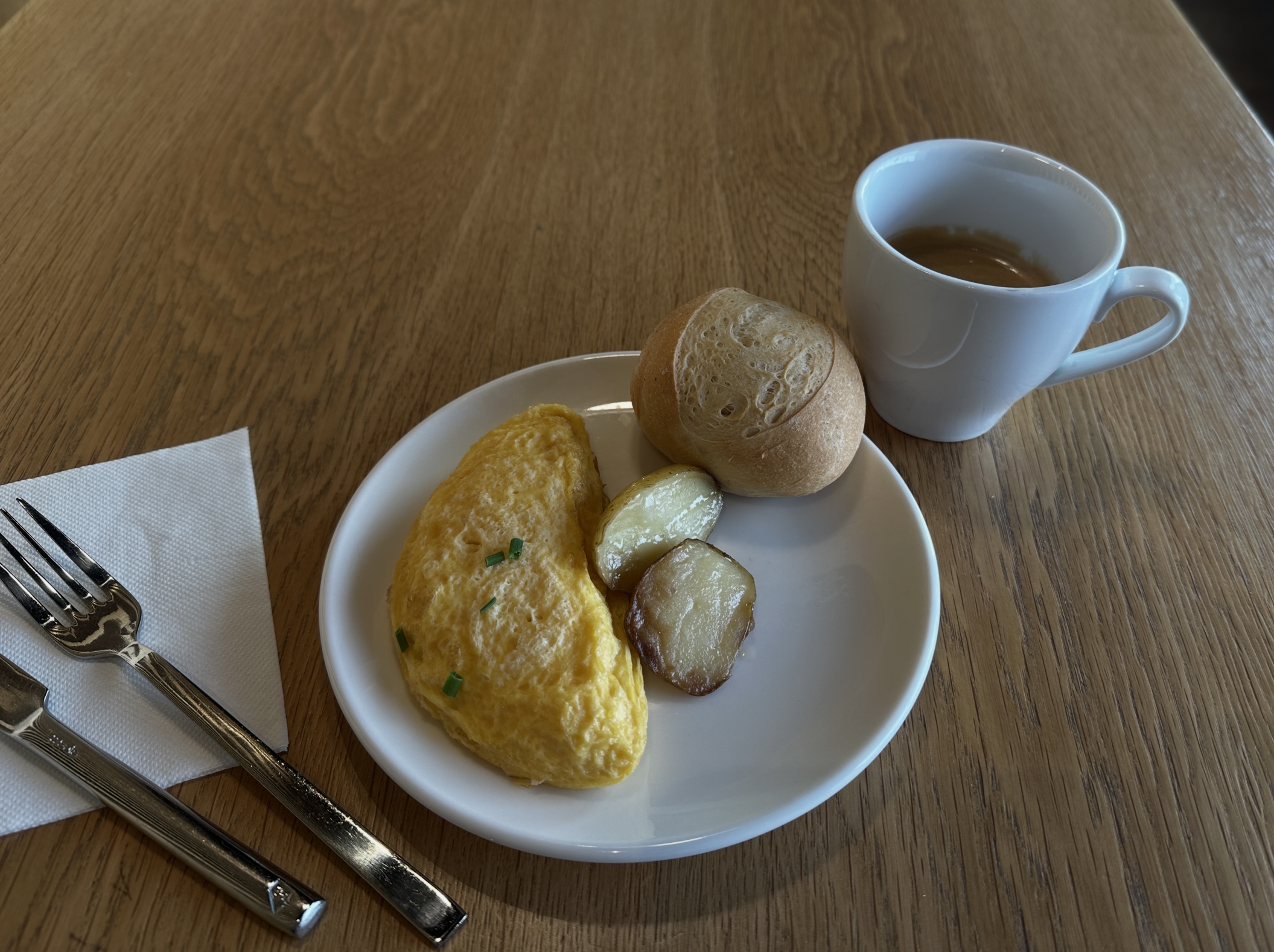 Ich durfte zur Lounge im Terminal D, wo ich noch ein Zweier-Tischen und ein kleines Frühstück bekam. Es war recht voll und die Aussicht ist schon nicht so toll, wie bei der im E.