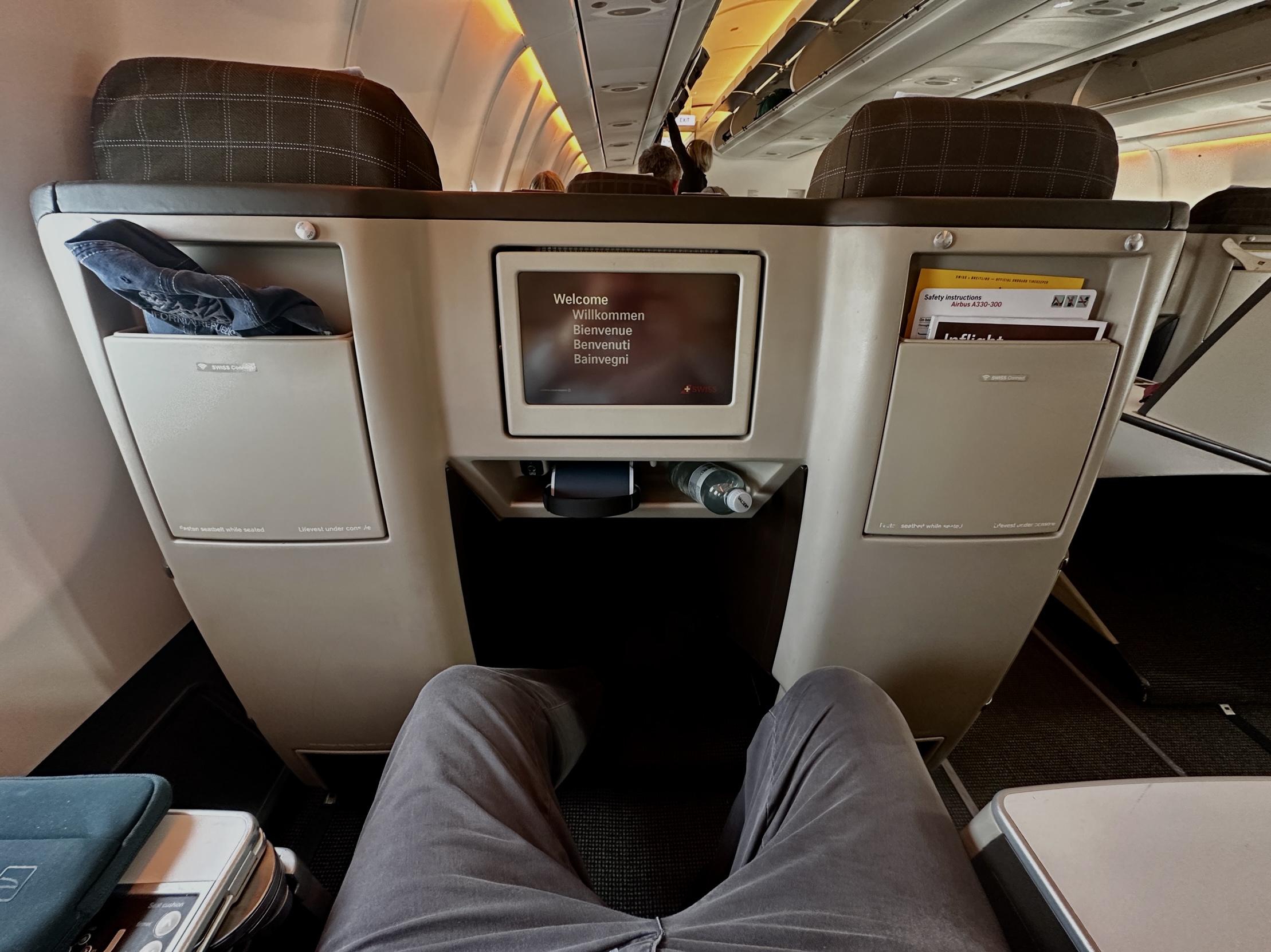 Ich nahm Platz auf meinem Einzelsitz, den ich für einen satten Aufpreis reservieren konnte. Die Zweier-Sitze in der Business sind mE echt den Preis nicht Wert. Der Fensterplatz muss dabei über den Gangplatz klettern oder die Person dort zum Aufstehen nötigen. Meines Erachtens ist das nicht der Klasse würdig. Das machen andere Fluggesellschaften deutlich besser.