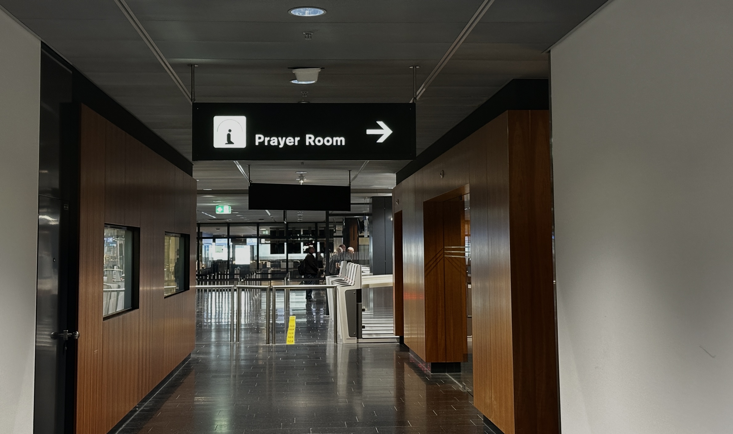 Danach durften wir über eine Treppe den 12jährigen A 333 besteigen, der uns nach Montréal bringt. Den Prayer Room (der irgendwie eher wie eine Raucher Lounge aussah) brauchen wir ja wohl nicht. 😂