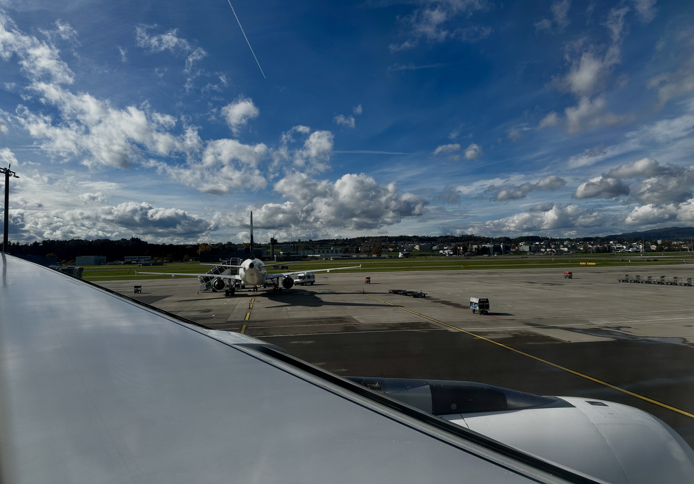 Mit leichter Verspätung ging es dann los, die Aussicht aus dem Fenster zeigte sich wolkig und doch blau.