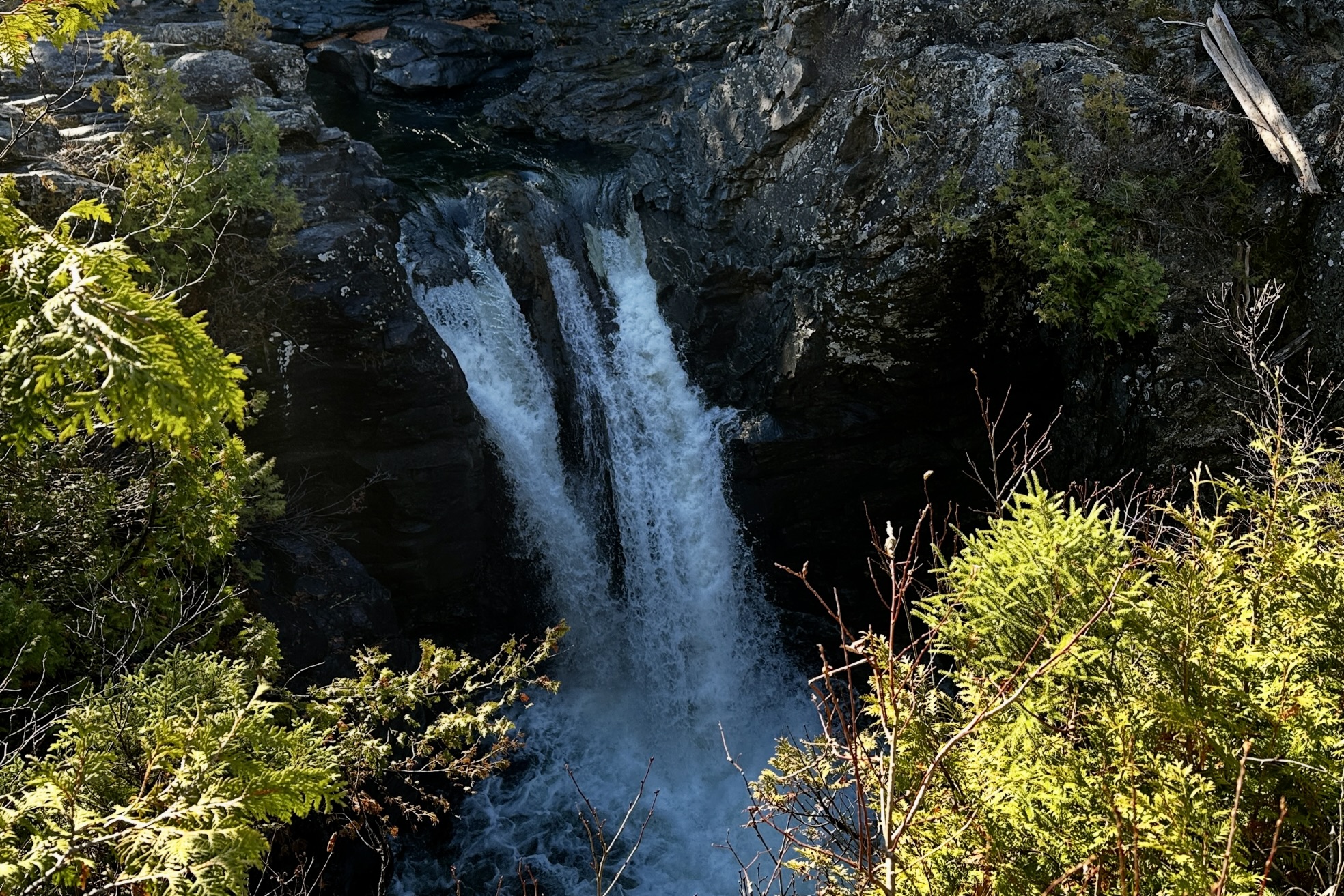 Etwa eine Dreiviertelstunde nach der Abfahrt vom Hotel kurz nach der Gîte du Mont-Albert signalisierte ein Wegweiser, die «Chute Sainte-Anne», aber da war ich schon vorbei. Da ich viel zu viel Zeit hatte, kehrte ich kurz um.